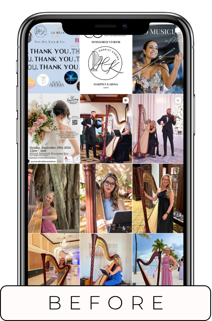 Karina came in knowing her Instagram needed help, but not quite knowing where to start. She had beautiful photos, real talent, and a warmth that her feed just wasn't capturing yet.