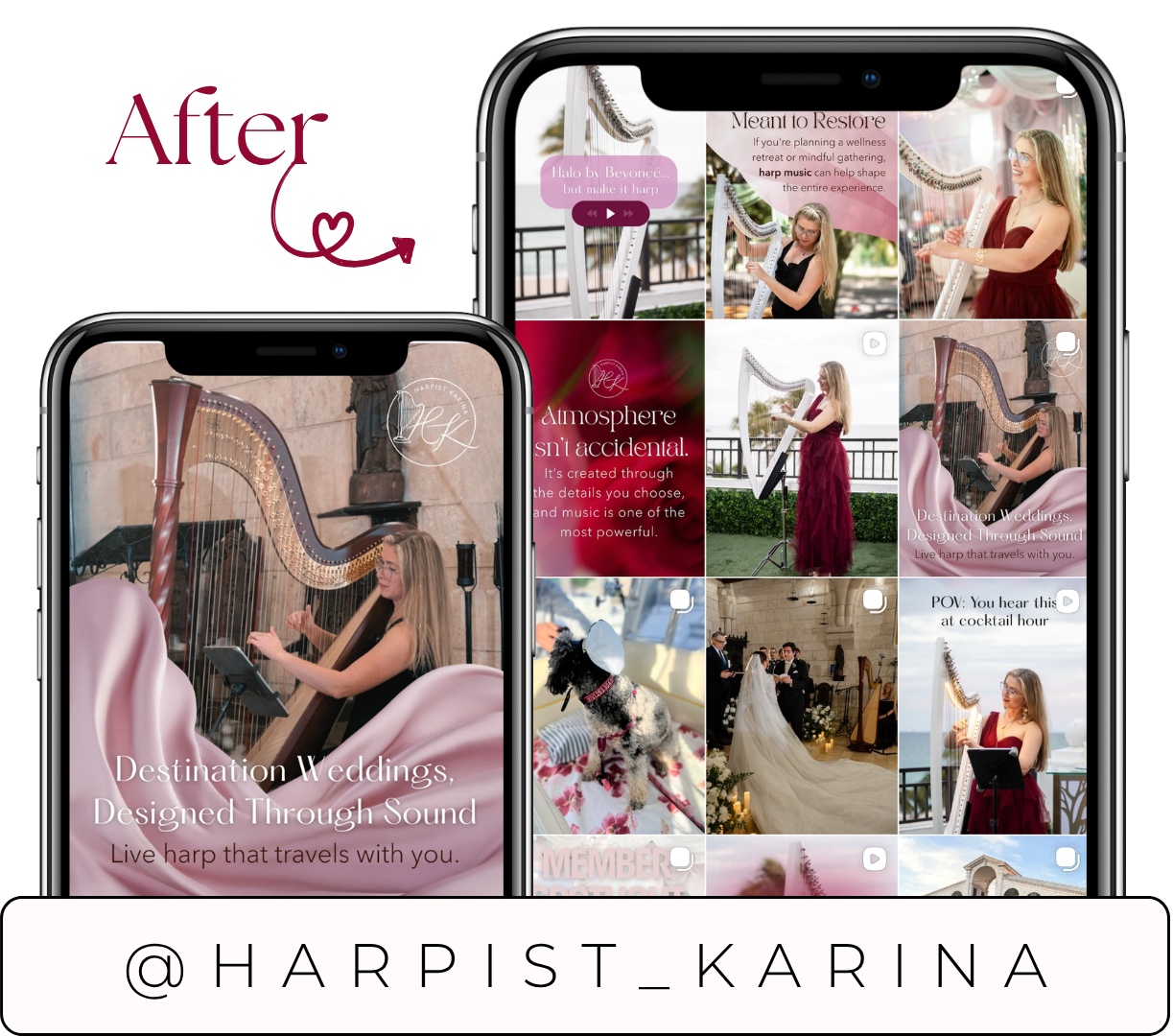 She came to me ready to build something intentional, a brand identity and social media presence that could hold the full range of who she is: classically trained, warmly approachable, and far more versatile than anyone expected from a harpist.